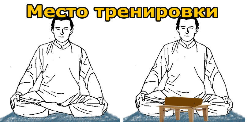 Принимаем исходную позу тренировки - полу лотос.Устанавливаем перед собой табурет с расположенным на нем железным мешком.