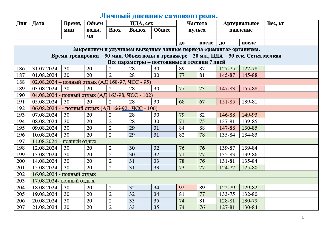 Итак, в следующей статье я расскажу вам об изменениях, которые вносятся в тренировочный процесс. Основным отличием будет применение в конструкции тренажера дополнительной, третьей внешней емкости. Также расскажу о применении мной порционного дыхания и интервальной тренировки. И как всегда, покажу скриншоты с параметрами из личного дневника самоконтроля. До скорой встречи!