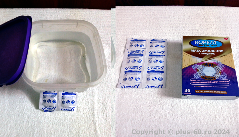 Для приготовления раствора вам необходимо будет приобрести специальные таблетки, которые используются для чистки зубных протезов. Их разновидностей в настоящее время превеликое множество от разных производителей и приобрести их можно в любой аптеке. Растворенные в воде таблетки насыщают воду активным кислородом, который и чистит с обеззараживанием все поверхности тренажера. Для очистки тренажера достаточно подержать в растворе части тренажера не менее 2-3 часов.