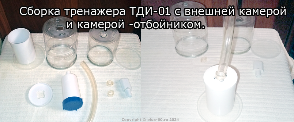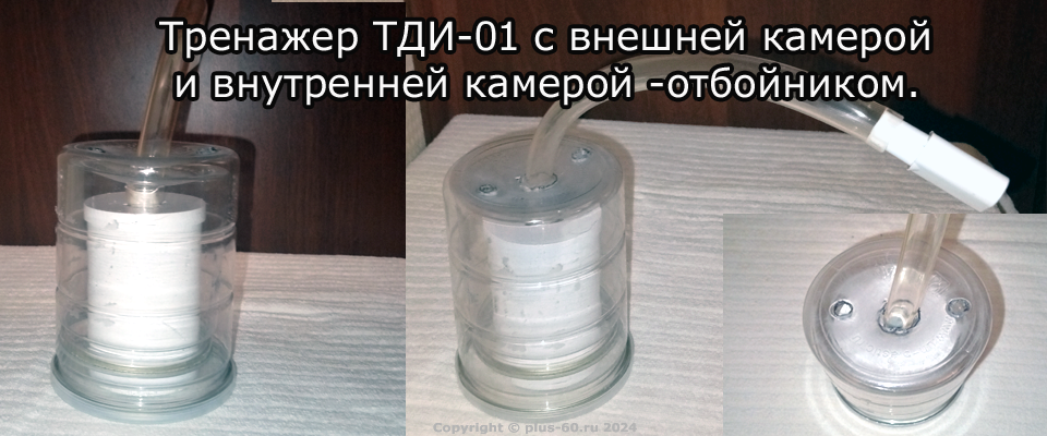 Настоятельно рекомендую начинать занятия на трехкамерном тренажере ТДИ-01 без отбойника. Занятия на трехкамерном с отбойником требует наличие опыта занятий не менее двух-трех лет, так как необходим тщательный контроль самочувствия при проведении тренировки и осуществление самостоятельной дополнительной регулировки положения отбойника. Положение отбойника определяет концентрацию СО2 в воздушной смеси. Предлагаю рассмотреть для тренировок вариант трехкамерного тренажера Фролова ТДИ-01 без отбойника, изготовление которого не вызовет особых трудностей.Посмотрите следующую статью на сайте: "Трехкамерный тренажер Фролова без отбойника. Рекомендации по изготовлению своими руками."